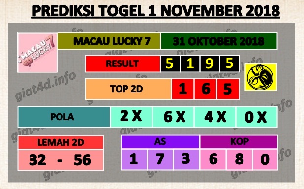 PREDIKSI TOGEL MACAU LUCKY 7 KAMIS 1 NOVEMBER 2018 GIAT 4D